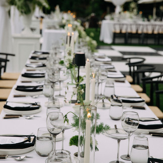 Three days before the wedding, we had made the critical call to commit to a rain plan, installing the clear-top tent early in the week. When rain poured from noon to three on the wedding day, every rental, linen, and floral design was protected. By the time guests arrived, the sky cleared and the tent shimmered with light, creating the most romantic setting imaginable.
